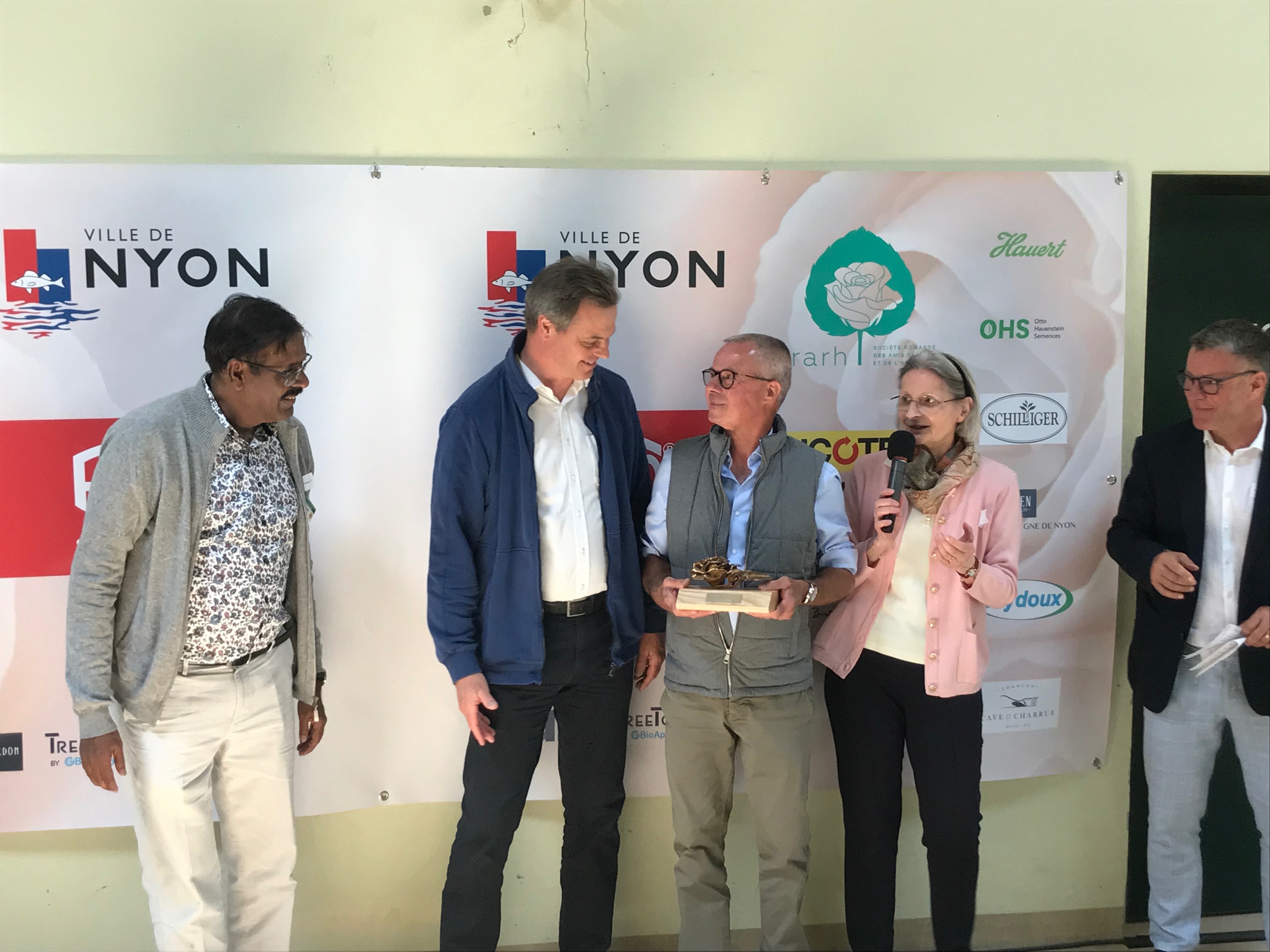 Ci-dessous, en ce 12 juin 2024, a été signée, la convention entre la Ville de Nyon, la SRARH et l’association Les Amis de la rose de Nyon (LARN) et le CIRNN afin de garantir son niveau d’excellence. De gauche à droite, Pierre-François Umiglia, Secrétaire municipal, Daniel Rossellat, Syndic, Jean-Luc Pasquier, Président du CIRNN, Liliane Castioni, Vice-présidente de la SRARH et Regula Zellweger, Vice-présidente du LARN.
